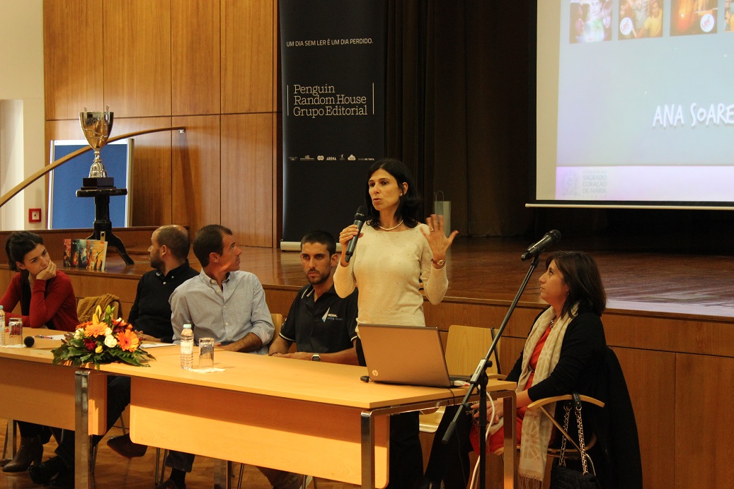 A conversa juntou a leitura ao desporto: as autoras apresentaram a coleção e destacaram o tema do último livro. Referiram-se à origem dos Jogos, à maratona, a Hércules e às suas motivações pessoais para escreverem esta aventura dos seus heróis.